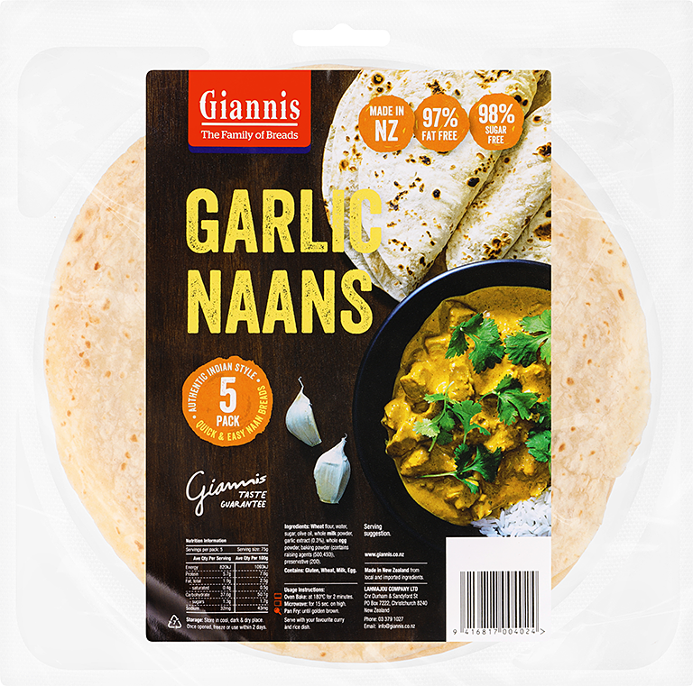 Now also in Garlic flavour, our authentic Indian style Naan have a delicious taste and are so versatile with any filling, or serve with your favourite curry and rice.